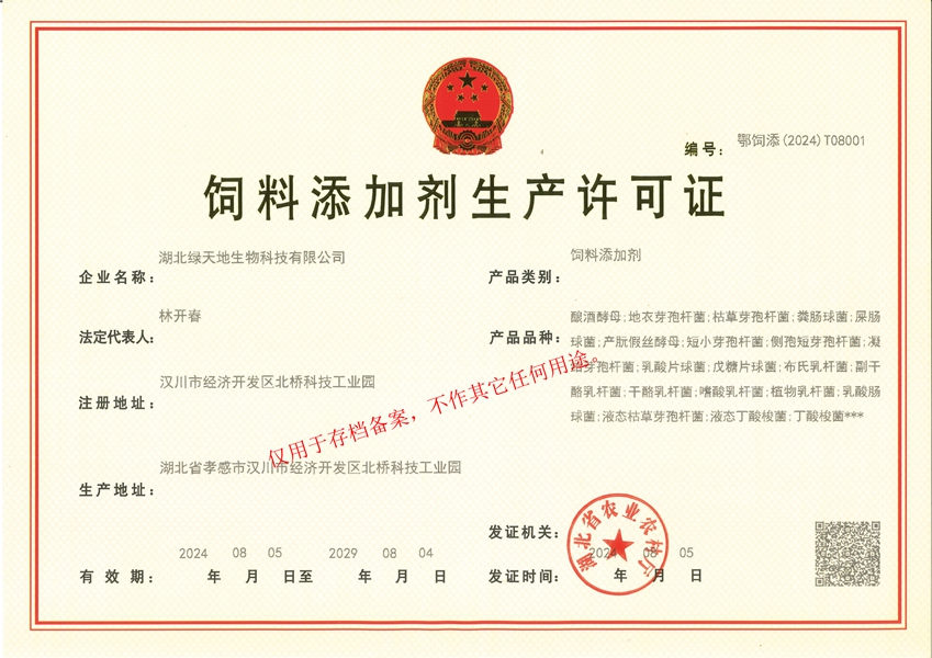 湖北綠天地生物科技有限公司 (簡(jiǎn)稱綠天地公司)投資7000萬(wàn)元,擁有25000平方米的廠房和國(guó)內(nèi)先進(jìn)的設(shè)備360臺(tái)套,建有微生物發(fā)酵、發(fā)酵冷凍干燥、低溫造粒等8個(gè)車間,發(fā)酵罐總?cè)萘?50立方米,專業(yè)的飼用級(jí)益生菌發(fā)酵生產(chǎn)基地。 公司已通過IS09001:2015質(zhì)量管理體系認(rèn)證。 綠天地公司得到了華中農(nóng)業(yè)大學(xué)、中國(guó)農(nóng)...